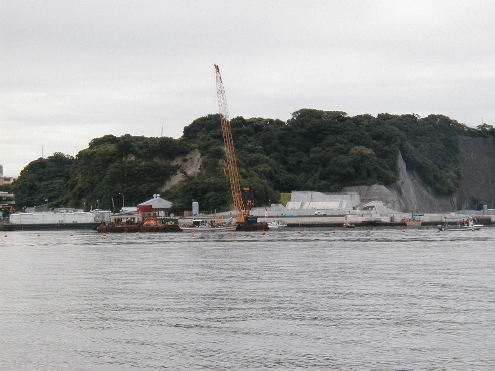 | 12号バースの延長工事は既に始まっているかその調査または準備工事と見られる作業が確認されました。(7月27日平和船団定例海上行動より撮影) |